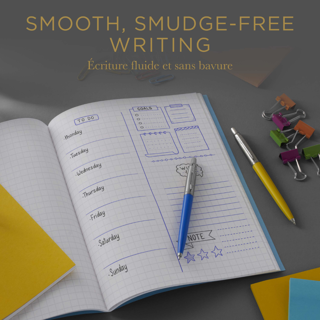 - Konsistent blæk uden stop, flydende og hurtigtørrende formel for klare streger med færre pletter